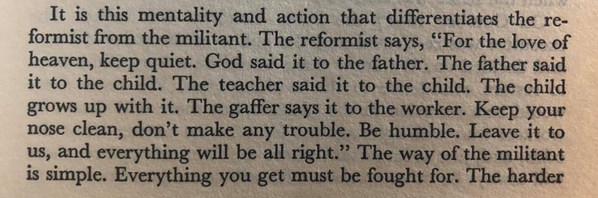 “Whether guns come soon, late or not at all, there will be times when it is far more revolutionary to refuse to have anything to do with guns. I think the provisional executive which is to be set up by the conference will be far wiser to devote themselves to building up such organisation as will make it possible to win the maximum of our party policy with the minimum of violence.”