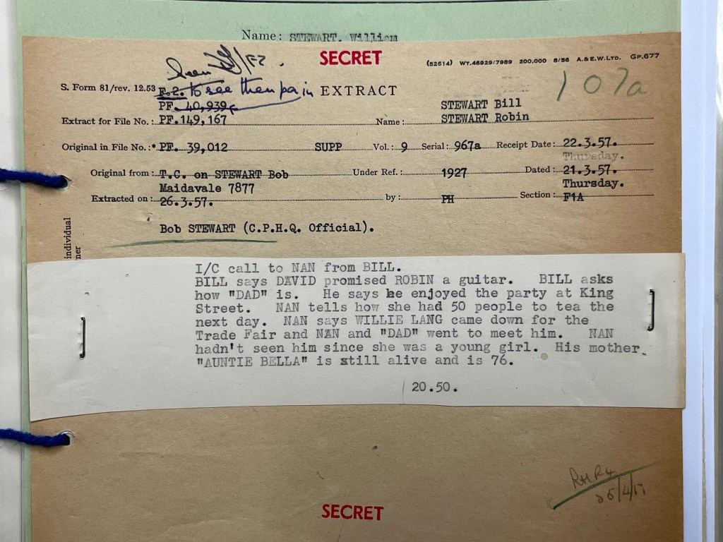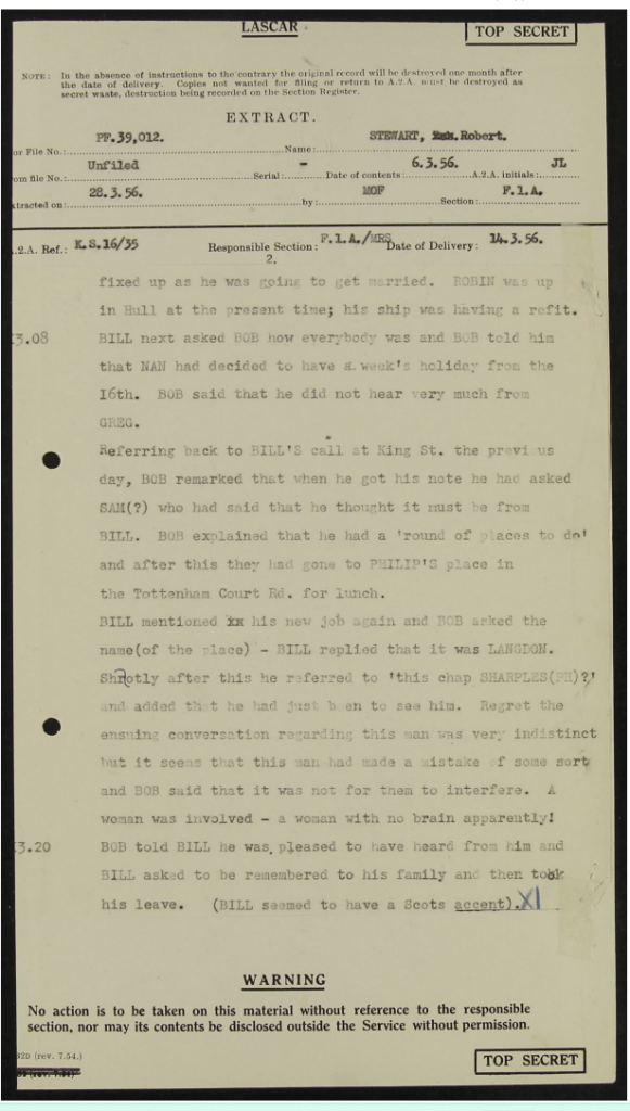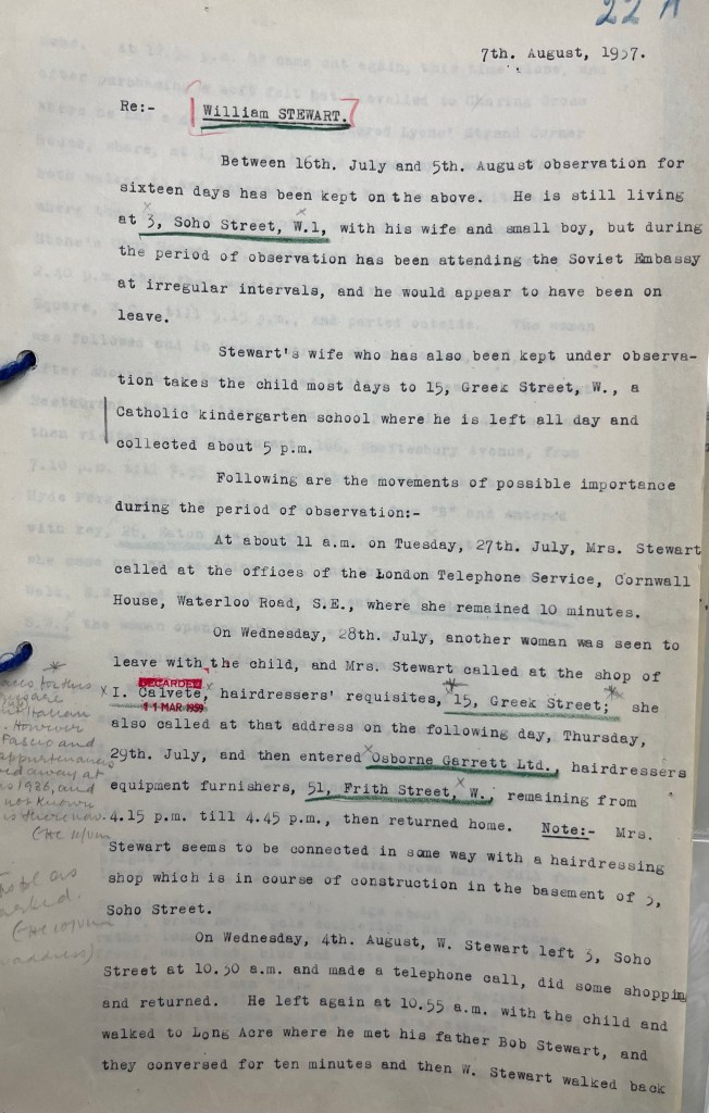 Surveillance was maintained on William Stewart throughout his employment at the Russian embassy to the extent that the security services are also following our grandmother on the school run at a discreet distance.